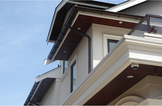 We have a half round extrusion machine that can create seamless half round gutters on site. Available in aluminum, zinc or copper, European gutters and 3” round downpipes provide a sophisticated, timeless look that enhances custom builds and upscale properties. As well as being a functional necessity, the gutters and downpipes become an elegant architectural detail on the home.